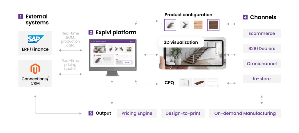 Expivi brings configuration, 3D visualization, and integration together in one unified workflow. This empowers manufacturers and retailers to seamlessly optimize the entire ordering process.